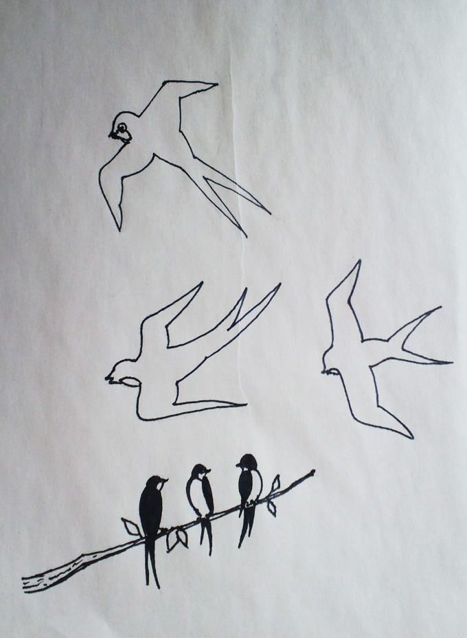 今回、NIIHARAのメニューに描いたツバメのイラストです。